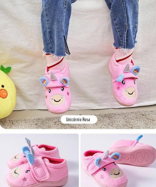 Pantufa Infantil de Unicórnio Rosa