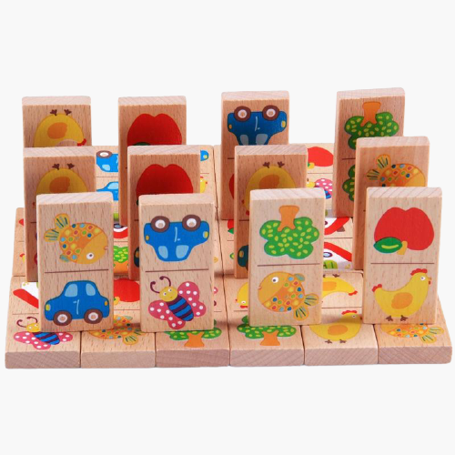 O dominó também é um jogo de combinar, que é perfeito para desenvolver a capacidade cognitiva dos bebês mais crescidos. Dominó ajuda as crianças no desenvolvimento da memória, pensamento lógico e interação social.