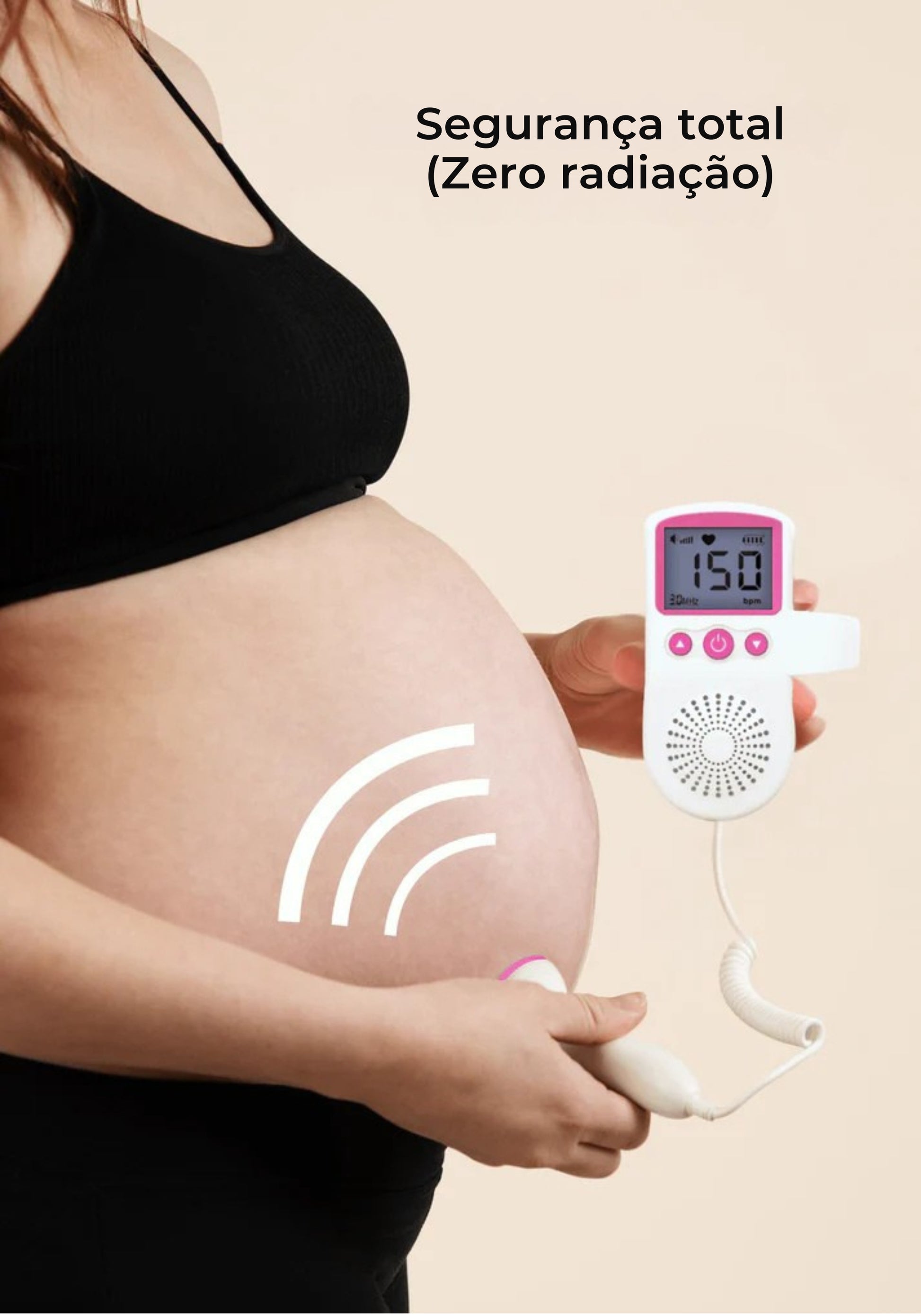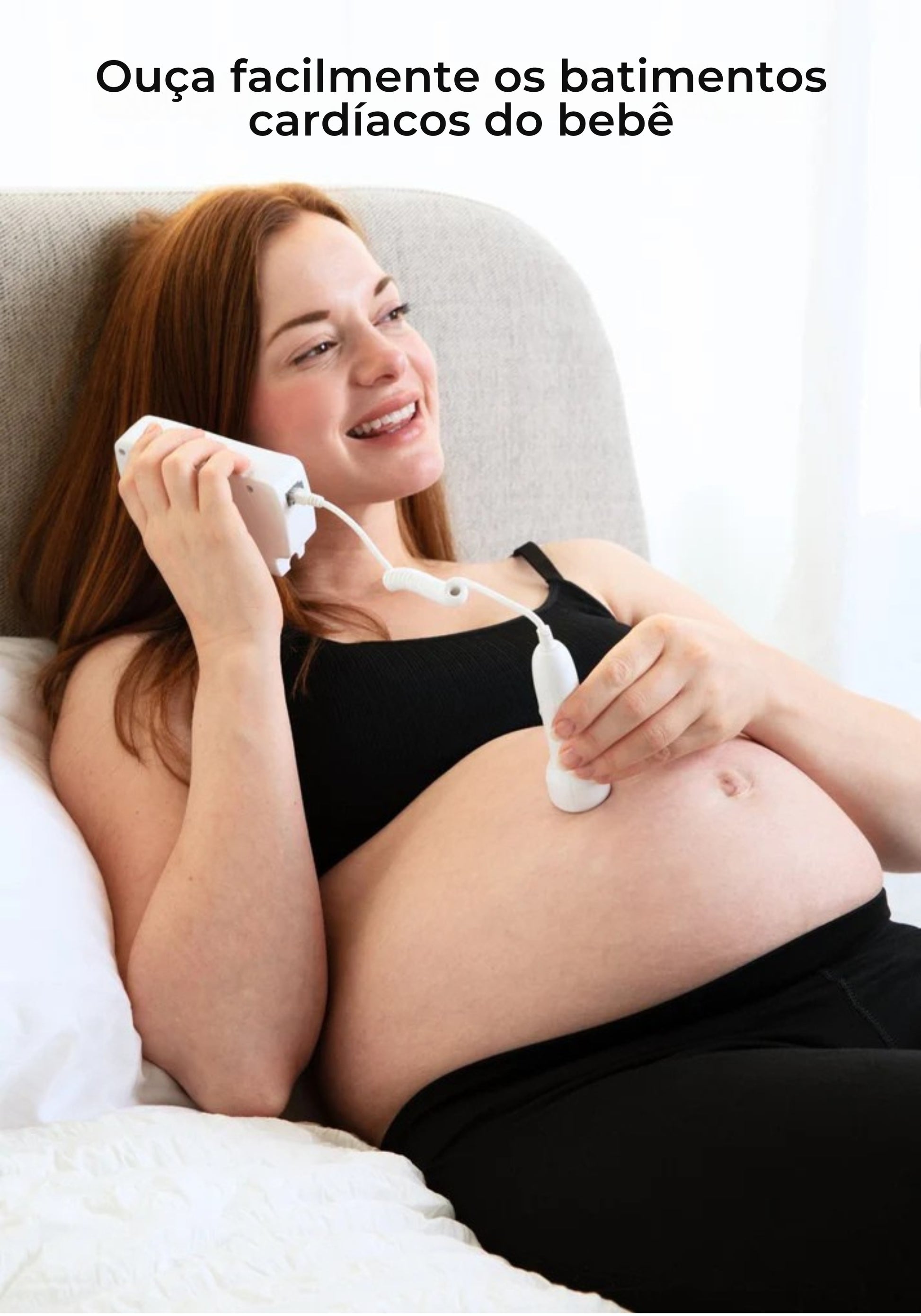 É um kit pensado para uso imediato, que permite captar os batimentos cardíacos do bebê através de ondas sonoras, de forma simples e prática.