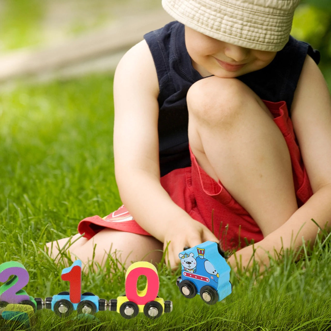 Conjunto de brinquedos com números de 0 a 10, unidos por ímãs para crianças aprenderem matemática de forma divertida e prática.